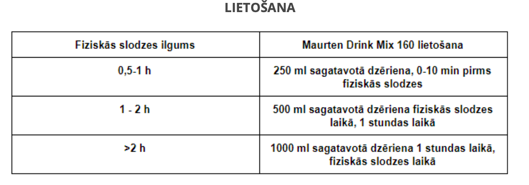 Uztura bagātinātājs MAURTEN DRINK MIX 160 ir speciāla nolūka pārtikas produkts, paredzēts cilvēkiem, kuriaskaras ar intensīvu fizisko slodzi, sevišķi sportistiem.